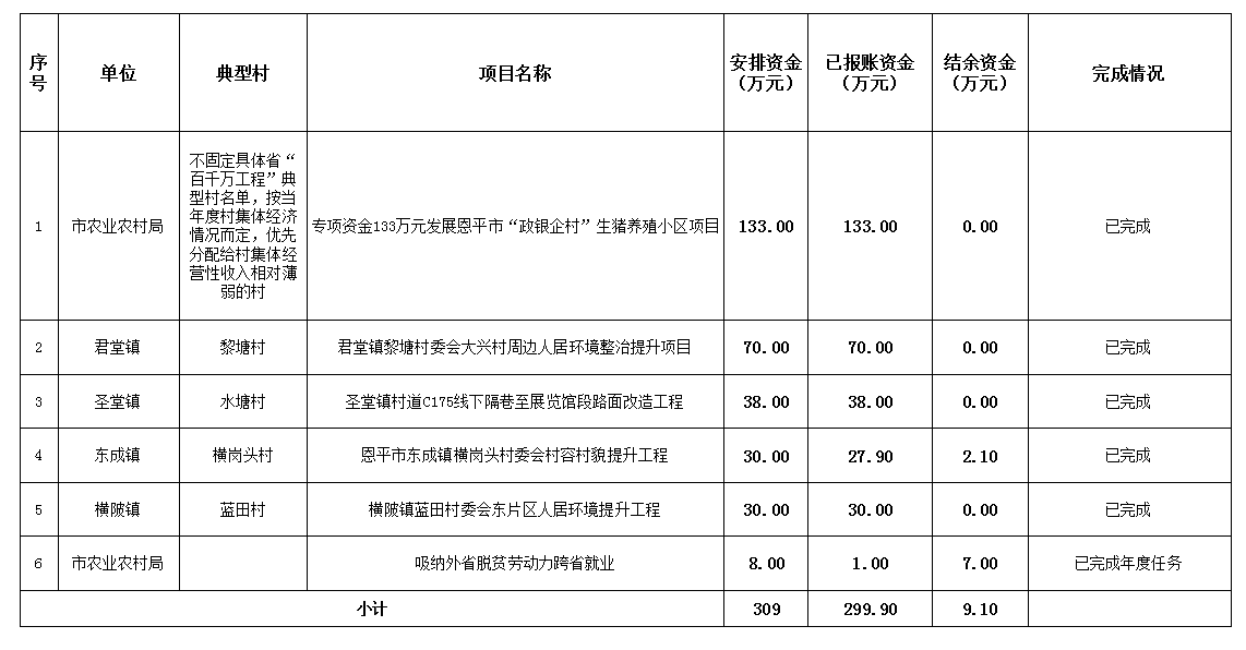 2024年中央財政銜接推進鄉(xiāng)村振興補助資金項目完成情況的公示