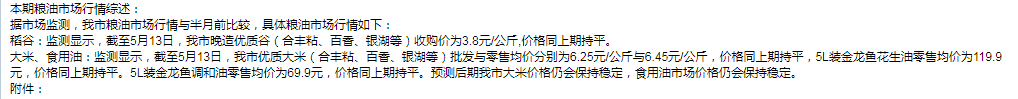 糧油價(jià)格監(jiān)測(2021年5月13日)