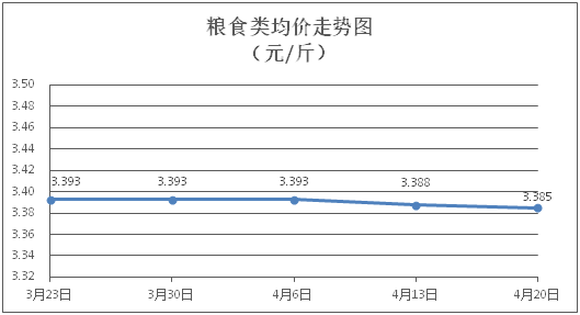 糧食類商品價(jià)格穩(wěn)中微降。所監(jiān)測(cè)的4種糧食類商品價(jià)格波動(dòng)情況為1漲2跌1平,綜合零售均價(jià)為每斤3.385元,環(huán)比下降0.07%。其中:絲苗米、面粉零售均價(jià)分別為每斤3.50元、3.40元,環(huán)比分別下降0.28%、持平。