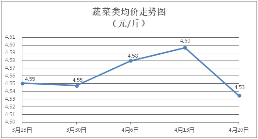 據(jù)本市21家農(nóng)貿(mào)市場(chǎng)監(jiān)測(cè)數(shù)據(jù)顯示,上周(4月14日至4月20日)市場(chǎng)上各類“菜籃子”商品供應(yīng)充足,所監(jiān)測(cè)的7大類“菜籃子”商品價(jià)格環(huán)比總體表現(xiàn)為3漲4跌。其中:糧油類商品價(jià)格總體略降,肉類、水果類、水產(chǎn)類商品價(jià)格窄幅盤整,禽蛋類、蔬菜類商品價(jià)格以降為主。