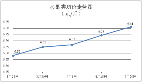 水果類商品價(jià)格小幅上漲。所監(jiān)測(cè)的6種水果商品價(jià)格波動(dòng)情況為4漲2跌,綜合零售均價(jià)為每斤6.81元,環(huán)比上漲1.01%。其中橙子、香蕉、葡萄零售均價(jià)分別為每斤6.35元、3.36元、14.53元,環(huán)比分別上漲2.58%、上漲0.60%、上漲1.96%。
