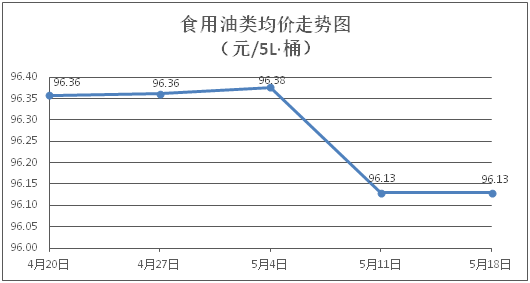 食用油類商品價(jià)格微幅波動(dòng)。所監(jiān)測(cè)的9種食用油(5L裝)商品價(jià)格波動(dòng)情況為4漲4跌1平,綜合零售均價(jià)為每桶96.13元,環(huán)比下降0.001%。其中:金龍魚花生油、玉米油零售均價(jià)為每桶102.12元、76.24元,環(huán)比分別下降0.23%、上漲0.05%。