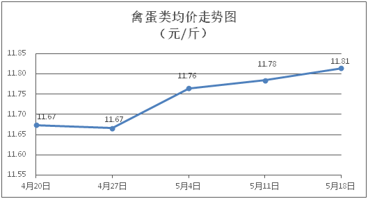 禽蛋類商品價(jià)格微幅上漲。所監(jiān)測(cè)的5種禽蛋類商品價(jià)格波動(dòng)情況為2漲1跌2平,綜合零售均價(jià)為每斤11.81元,環(huán)比上漲0.25%。其中:白條雞、白條鴨零售均價(jià)分別為每斤20.72元、15.31元,環(huán)比分別上漲0.44%、上漲0.46%;雞蛋、鴨蛋零售均價(jià)分別為每斤6.64元、7.19元,環(huán)比分別下降0.15%、持平。