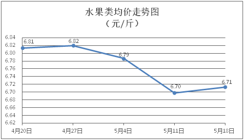 水果類商品價(jià)格窄幅盤整。所監(jiān)測(cè)的6種水果商品價(jià)格波動(dòng)情況為2漲1跌3平,綜合零售均價(jià)為每斤6.71元,環(huán)比上漲0.22%。其中橙子、香蕉、梨零售均價(jià)分別為每斤6.35元、3.41元、5.39元,環(huán)比分別上漲0.95%、上漲1.19%、下降0.19%。