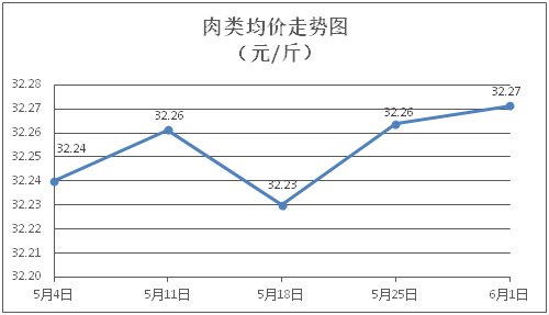 肉類商品價格總體微漲。所監(jiān)測的8種肉類商品價格波動情況為5漲2跌1平,綜合零售均價為每斤32.27元,環(huán)比上漲0.02%。其中:排骨、精瘦肉、肋條肉、牛肉、帶骨羊肉零售均價分別為每斤30.68元、19.18元、16.09元、46.36元、42.04元,環(huán)比分別上漲0.07%、下降0.52%、上漲0.37%、上漲0.04%、上漲0.17%。