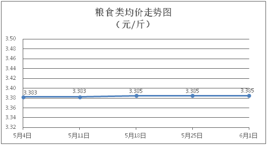 糧食類商品價格保持穩(wěn)定。所監(jiān)測的4種糧食類商品價格均持平,綜合零售均價為每斤3.385元。其中:絲苗米、面粉零售均價分別為每斤3.50元、3.40元,環(huán)比均持平。
