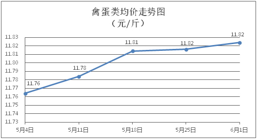 禽蛋類商品價格穩(wěn)中略漲。所監(jiān)測的5種禽蛋類商品價格波動情況為1漲4平,綜合零售均價為每斤11.82元,環(huán)比上漲0.07%。其中:白條雞、白條鴨零售均價分別為每斤20.75元、15.31元,環(huán)比分別持平、上漲0.26%;雞蛋、鴨蛋零售均價分別為每斤6.65元、7.20元,環(huán)比均持平。