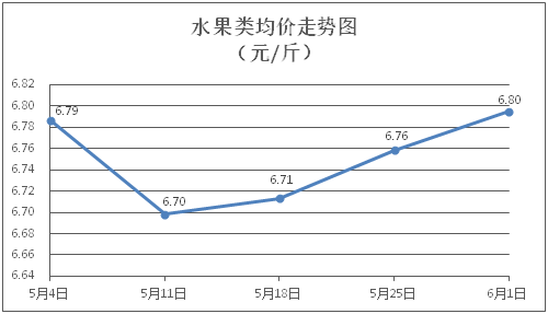 水果類商品價格略有上漲。所監(jiān)測的6種水果商品價格波動情況為3漲2跌1平,綜合零售均價為每斤6.80元,環(huán)比上漲0.54%。其中香蕉、葡萄零售均價分別為每斤3.42元、14.53元,環(huán)比分別持平、上漲1.40%。