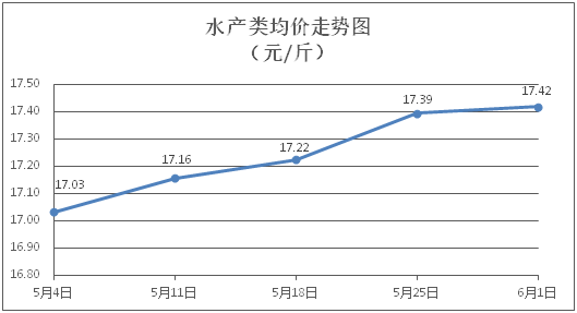 水產(chǎn)類商品價格窄幅盤整。所監(jiān)測的9種水產(chǎn)商品價格波動情況為4漲4跌1平,綜合均價為每斤17.42元,環(huán)比上漲0.14%。其中:草魚、鯽魚、羅非魚、基圍蝦零售均價分別為每斤11.21元、14.34元、9.10元、30.73元,環(huán)比分別下降0.18%、上漲0.14%、下降0.55%、上漲0.16%。