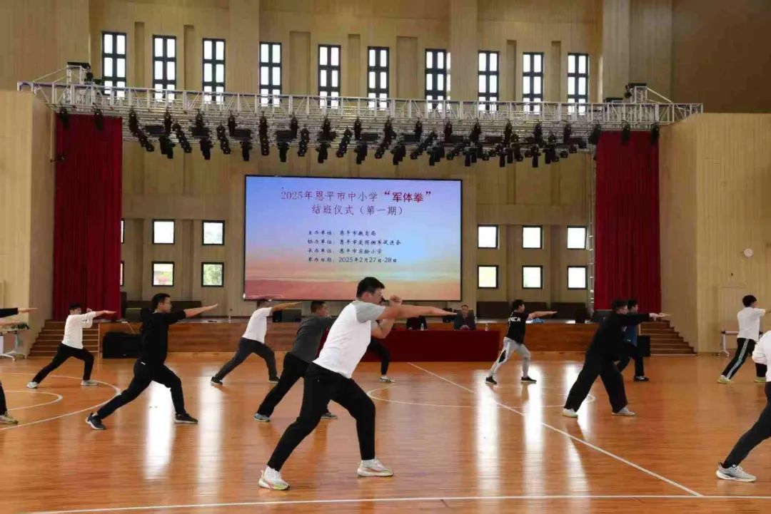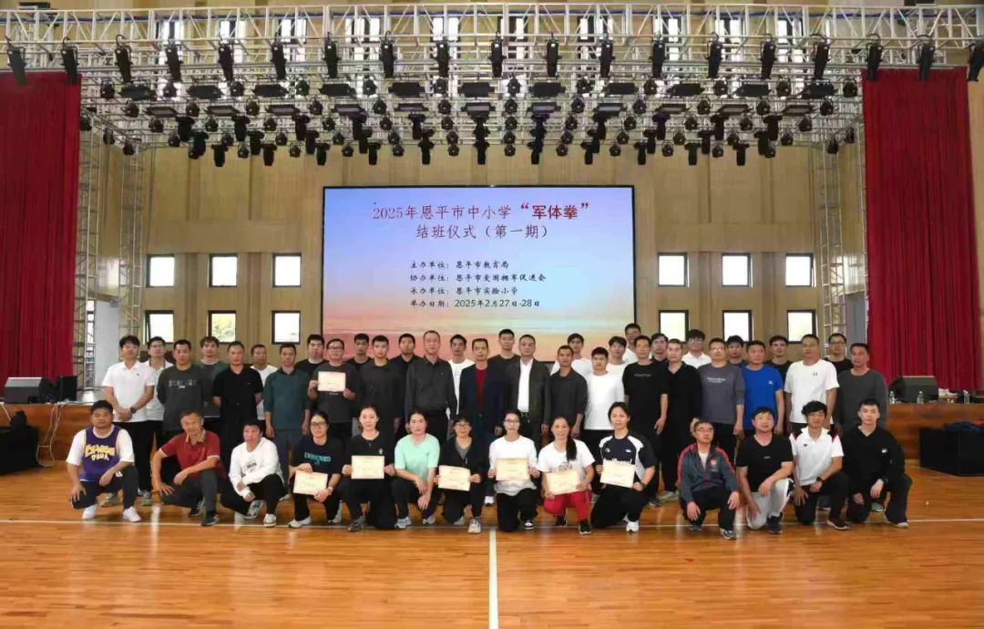 為積極響應國家關于加強青少年國防教育、提升體育教師綜合素質的號召,恩平市教育局聯(lián)合恩平市愛國擁軍促進會,于2025年2月27日一3月7日分別在恩平市實驗小學和恩城中學舉辦了兩期“軍體拳”教練員培訓班。