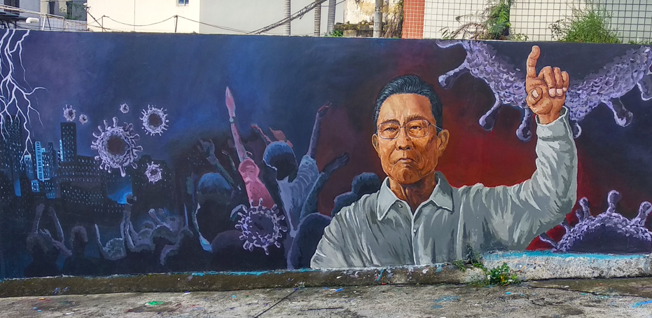 太美了!恩平一中學(xué)生用墻繪致敬一線抗疫人員