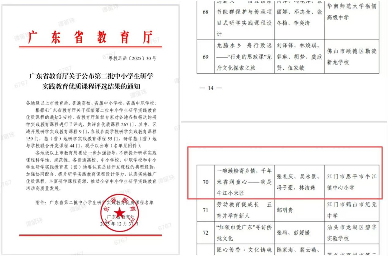 喜報!恩平市牛江鎮(zhèn)中心小學(xué)研學(xué)實踐課程獲評省級優(yōu)質(zhì)課程