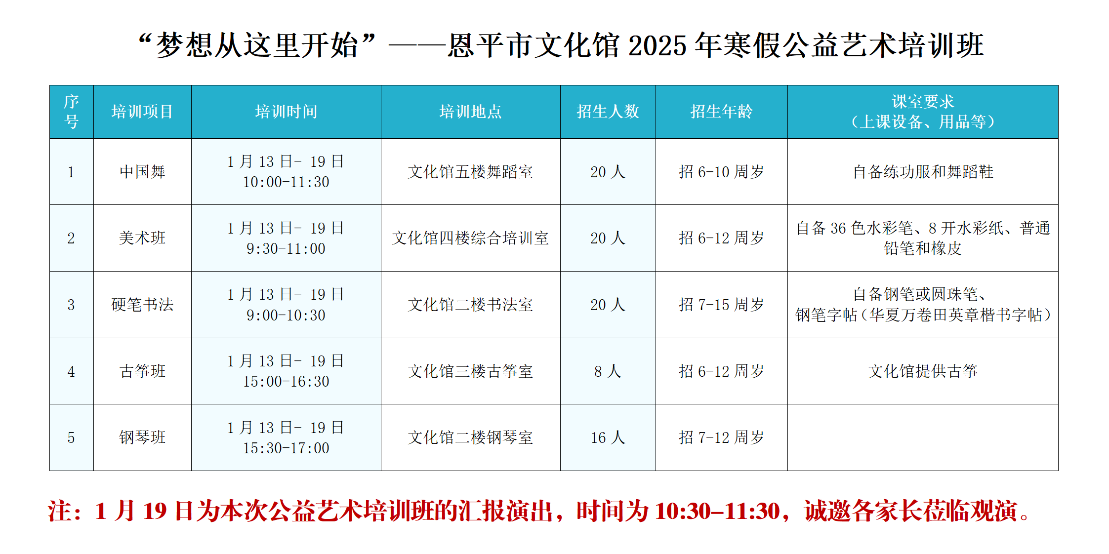 恩平市文化館2025年寒假公益藝術(shù)培訓(xùn)班開始招生啦!