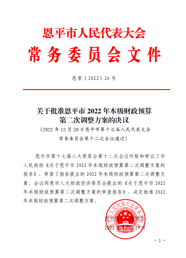 附件1:恩平市2022年本級預算第二次調整方案.docx