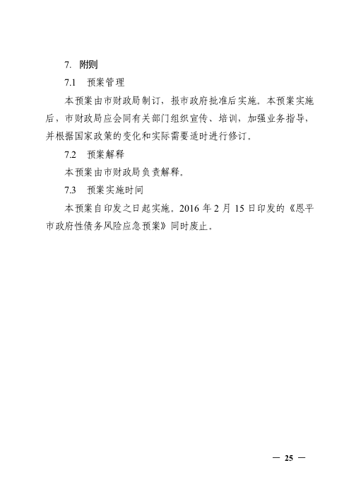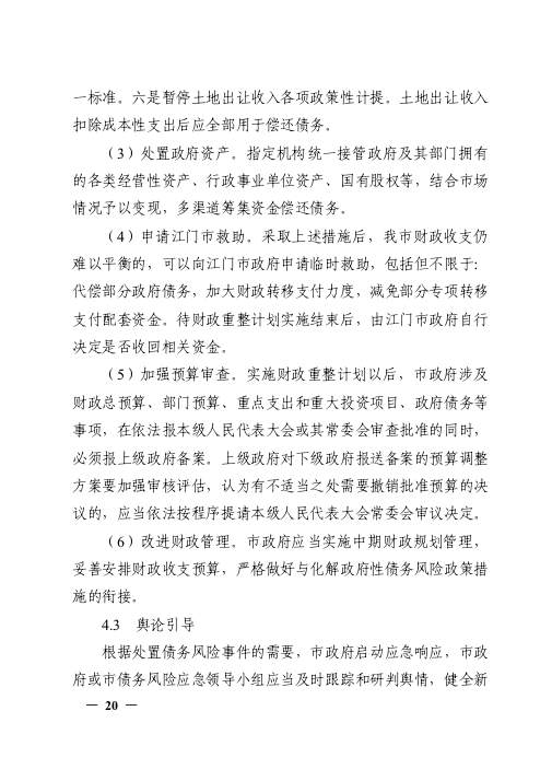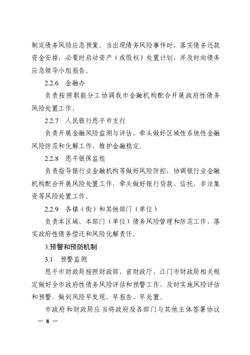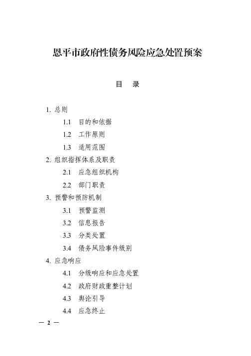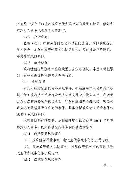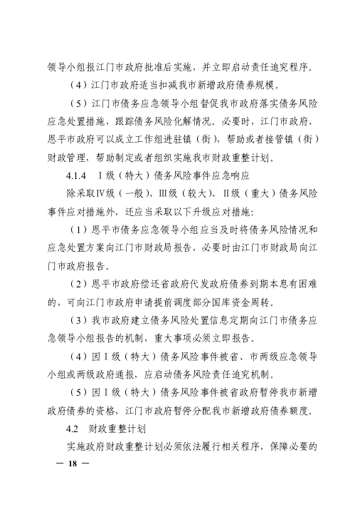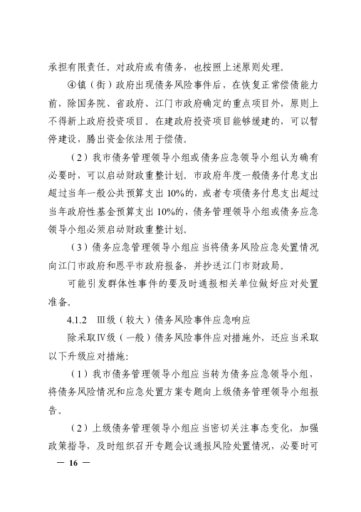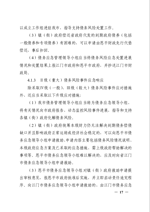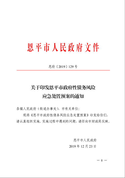 關(guān)于印發(fā)恩平市政府性債務(wù)風(fēng)險應(yīng)急處置預(yù)案的通知