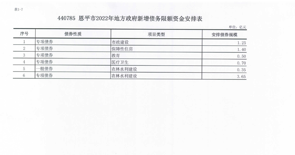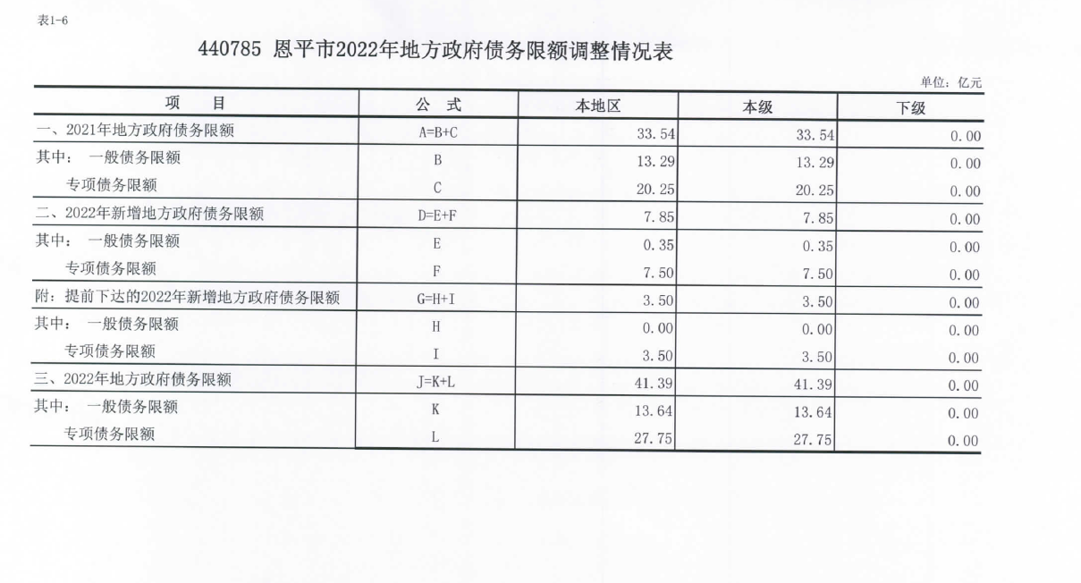 地方債務(wù)信息公開:恩平市2022年地方政府債務(wù)限額調(diào)整情況表