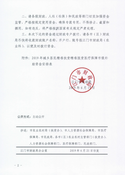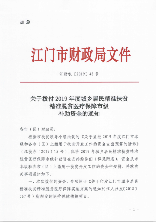 關(guān)于撥付2019年度城鄉(xiāng)居民精準(zhǔn)扶貧精準(zhǔn)脫貧醫(yī)療保障市級補助資金的通知