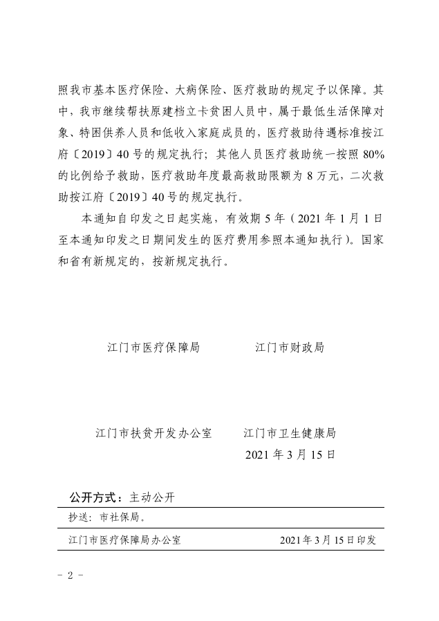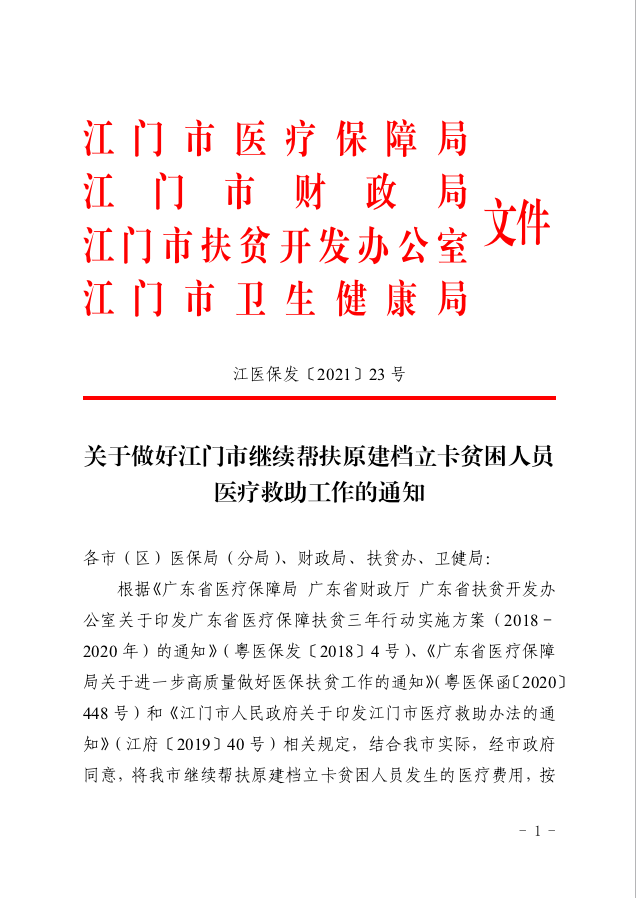 關(guān)于做好江門市繼續(xù)幫扶原建檔立卡貧困人員醫(yī)療救助工作的通知