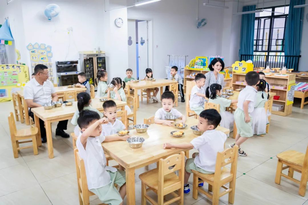 活動開始前,梁素貞一行來到東安分園的教室內(nèi),和幼兒一同共進早餐。就餐過程中,梁素貞親切與幼兒交流,詢問幼兒早餐味道如何,是否喜歡吃。