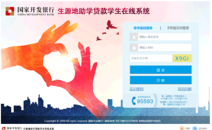 國家開發(fā)銀行承辦的生源地信用助學(xué)貸款全國統(tǒng)一服務(wù)熱線:95593