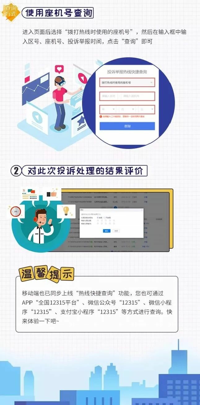 在3·15國際消費者權(quán)益日到來之際,為提升維權(quán)體驗,保障消費者的知情權(quán)、參與權(quán)和監(jiān)督權(quán),全國12315平臺“熱線辦理進度查詢”功能在網(wǎng)頁端和移動端同步上線,該功能可以方便群眾查詢12345政府熱線關(guān)于市場監(jiān)管投訴舉報的辦理進度,并對投訴辦理情況及涉及企業(yè)進行評價。