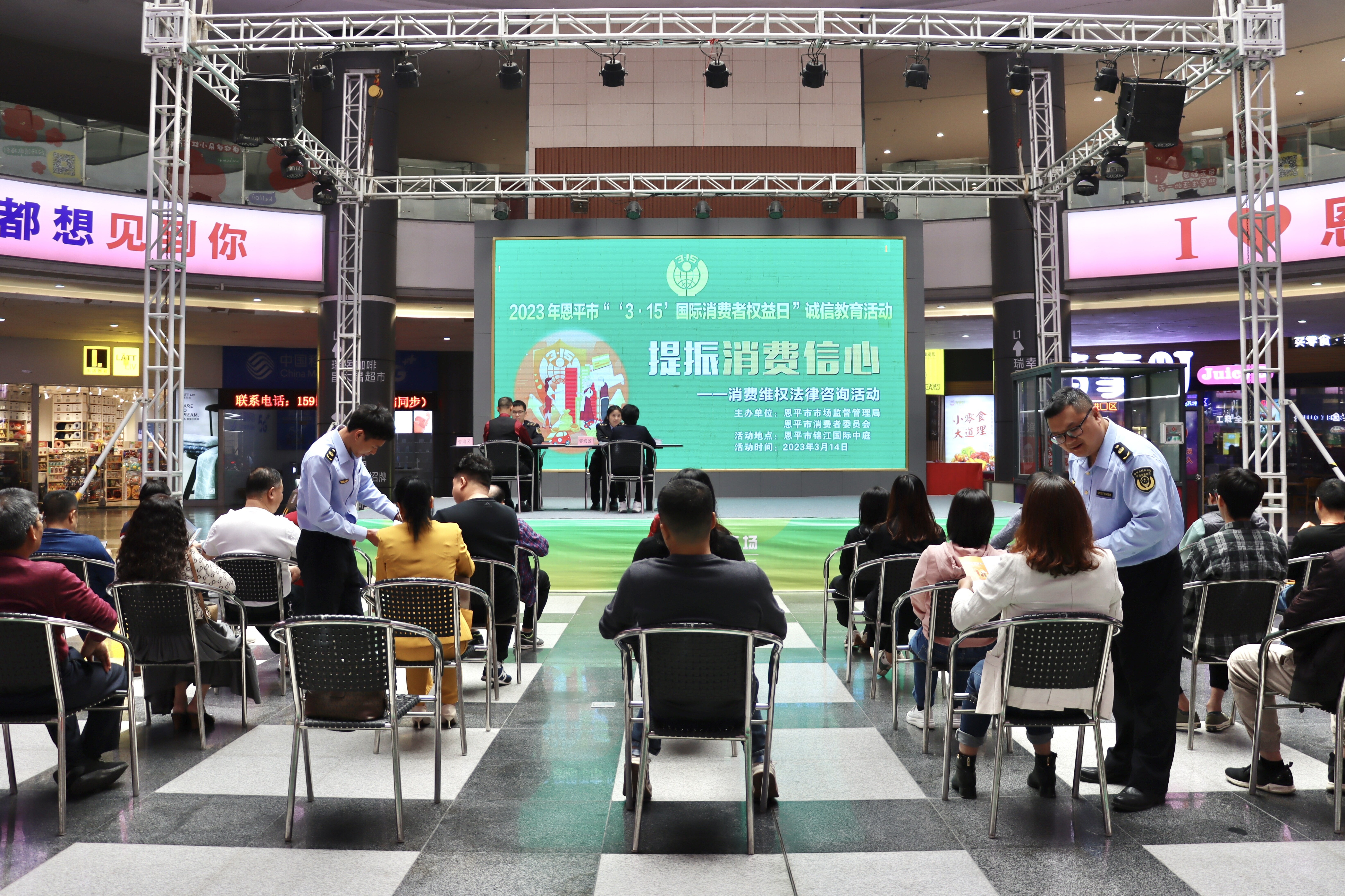 一是開展“恩平·法治大講堂”講座。3月9日,在市委市政府大樓東5樓開展《消費者權(quán)益保護法》專題授課講座。講座邀請了律師用專業(yè)的聲音、鮮活的案例深入分析《消費者權(quán)益保護法》,增強執(zhí)法人員對消費權(quán)益保護工作的認(rèn)識,提升行政執(zhí)法效能。二是開展消費維權(quán)法律咨詢活動。3月14日,市市場監(jiān)管局、市消委會在錦江國際中庭開展消費維權(quán)法律咨詢活動,執(zhí)法人員和普法志愿者通過案例分析及宣傳資料的形式,向市民介紹在日常消費中應(yīng)該注意的問題,引導(dǎo)市民正確維權(quán),維護自身的合法權(quán)益,提高消費者的自我保護意識和商家的誠信守法意識。現(xiàn)場為市民解答咨詢36次。