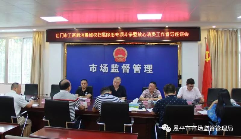 督查組一行先在市場監(jiān)管局召開督導座談會,聽取了該局關于消費維權掃黑除惡專項斗爭及放心消費等工作的情況匯報及下一步工作計劃。自黨中央、國務院部署開展掃黑除惡專項斗爭以來,該局認真貫徹落實恩平市委市政府和上級局的工作部署,成立局領導小組,建立健全工作機制,落實政策措施,工作取得了實效。篩選排查群眾舉報線索47條,已向江門市工商局和市委政法委(市掃黑除惡辦)報送線索6條,其中消費維權類5 條。通過半年來切實推進掃黑除惡專項斗爭,廣泛宣傳提升我市掃黑除惡專項斗爭知曉率,維護凈化了我市社會政治經濟發(fā)展環(huán)境。