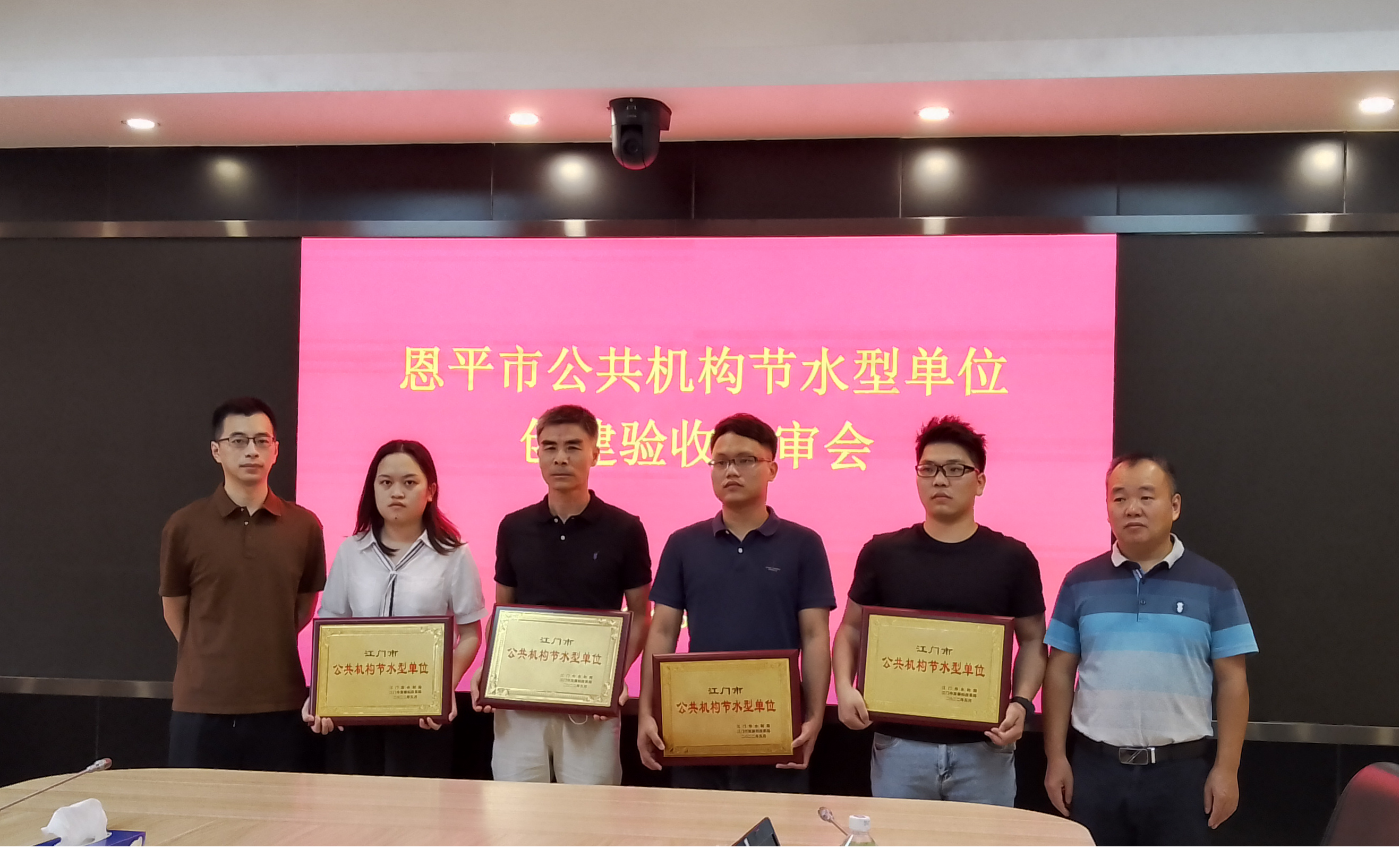 驗(yàn)收組采取現(xiàn)場抽查檢查、查閱相關(guān)資料、專家打分等方式進(jìn)行驗(yàn)收。驗(yàn)收組先后到達(dá)恩平市委市政府機(jī)關(guān)、恩平市科工商務(wù)局、交通運(yùn)輸局、應(yīng)急管理局等地點(diǎn)對節(jié)水器具推廣使用、水表分級計(jì)量、用水定額和節(jié)水宣傳開展現(xiàn)場檢查,評審會上專家認(rèn)真聽取了節(jié)水型單位建設(shè)工作情況匯報(bào),仔細(xì)查閱申報(bào)資料。驗(yàn)收組嚴(yán)格按照考核標(biāo)準(zhǔn),對各單位申報(bào)材料逐個(gè)進(jìn)行審核,經(jīng)過質(zhì)詢討論、現(xiàn)場評分等工作,現(xiàn)場給出審查意見。驗(yàn)收組充分肯定了各單位在節(jié)水型單位建設(shè)方面所做的努力,并提出改進(jìn)建議。最后驗(yàn)收組一致認(rèn)為中共恩平市委員會辦公室、恩平市人大常委會機(jī)關(guān)、恩平市人民政府辦公室、恩平市政協(xié)機(jī)關(guān)、恩平市科工商務(wù)局等36個(gè)單位均達(dá)到了公共機(jī)構(gòu)節(jié)水型單位評價(jià)標(biāo)準(zhǔn),36家單位全部通過驗(yàn)收。江門市水利局和江門市發(fā)展和改革局共同授予各創(chuàng)建單位“江門市公共機(jī)構(gòu)節(jié)水型單位”稱號。