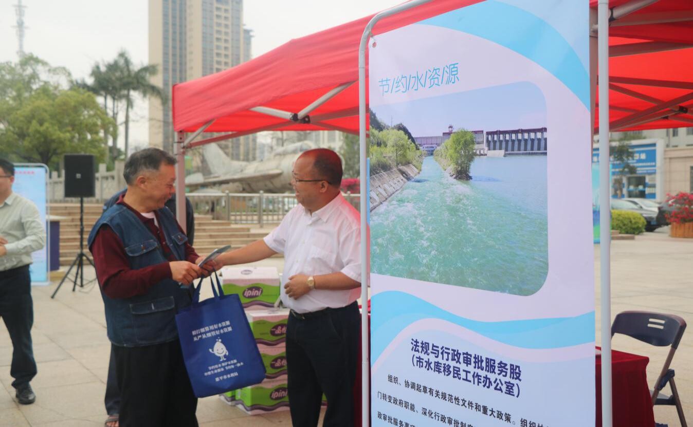 (工作人員發(fā)放節(jié)水宣傳彩冊(cè)普及節(jié)水知識(shí))