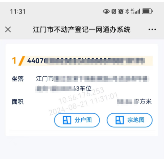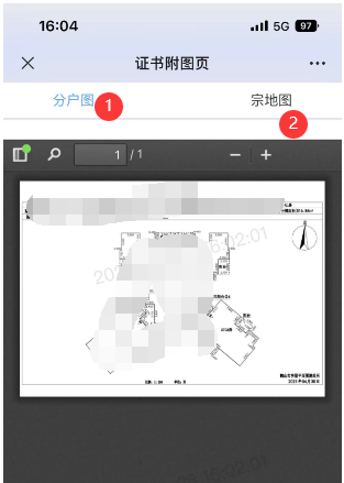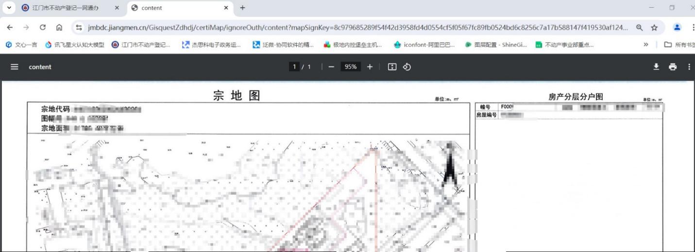 (3)跳轉顯示坐落、面積,分戶圖查看按鈕,宗地圖查看按鈕