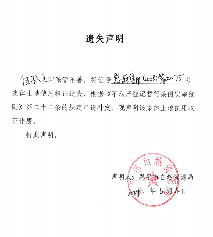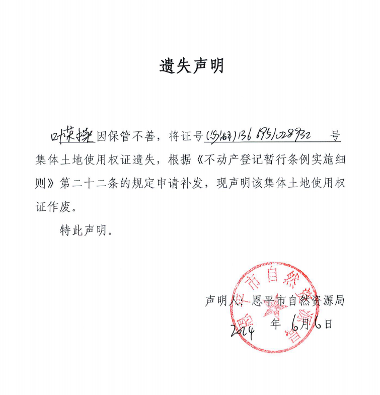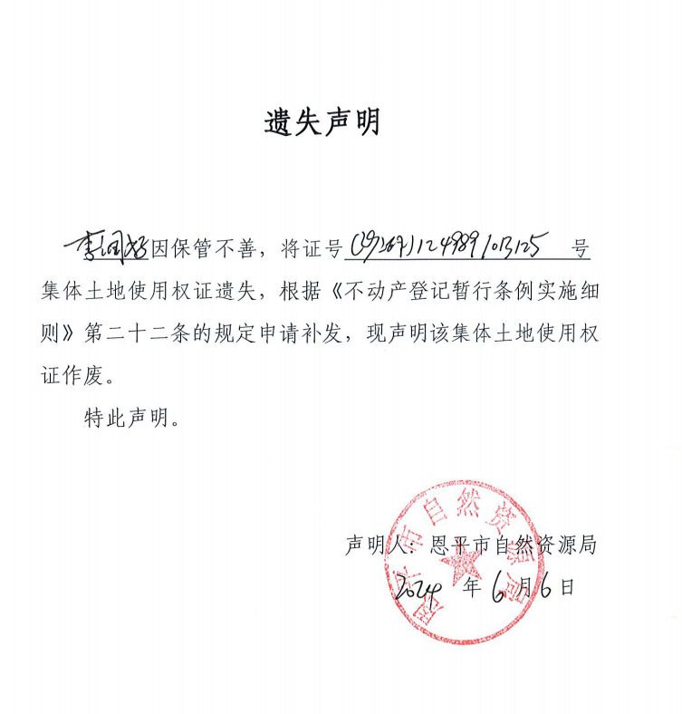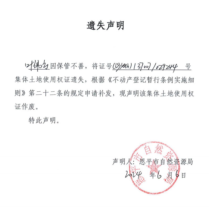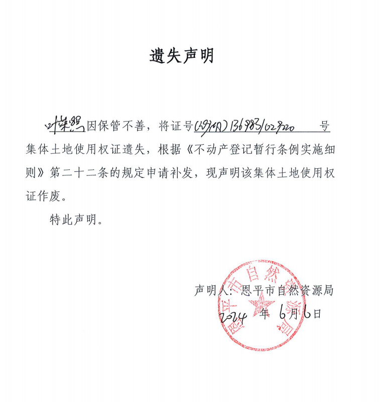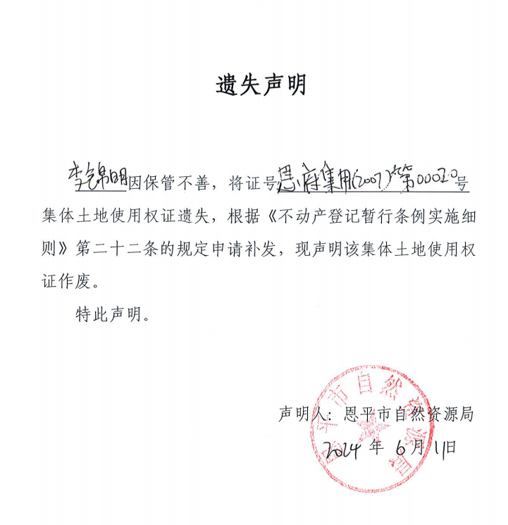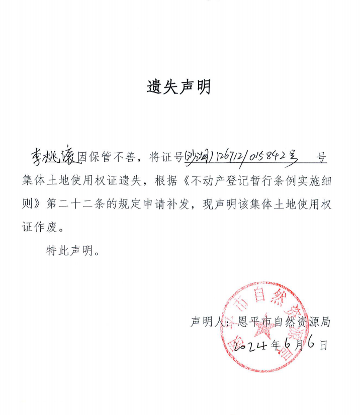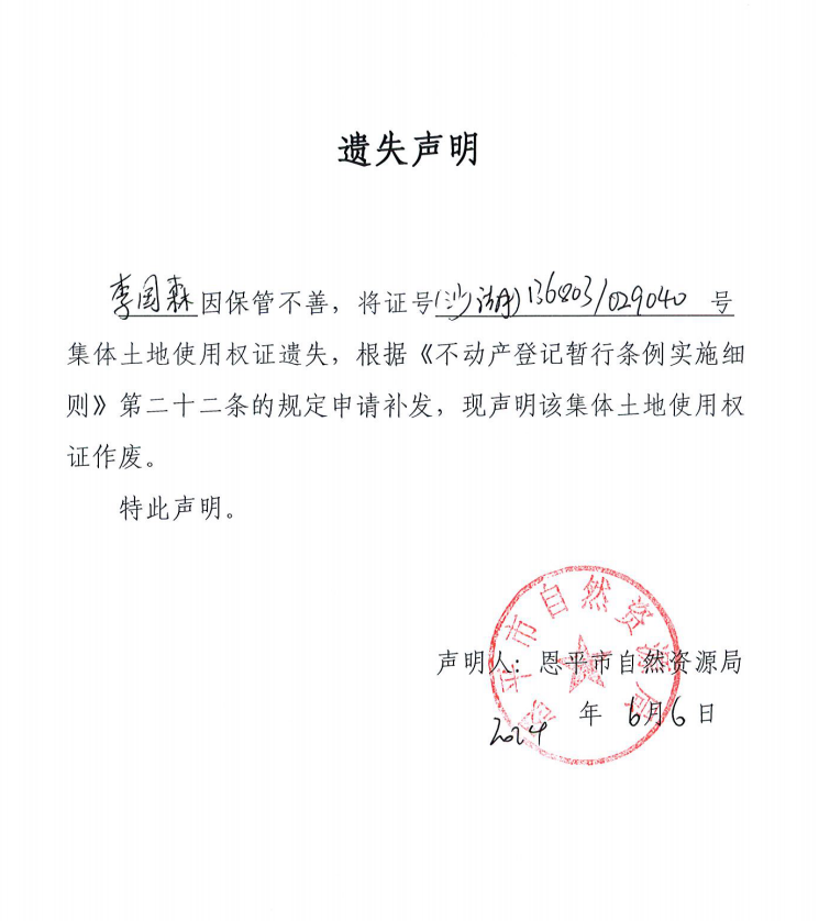 遺失聲明-伍積玉、葉偉方、葉榮照、李潤好、李榮潤、李國森、李桃滾、李錦明、葉榮操