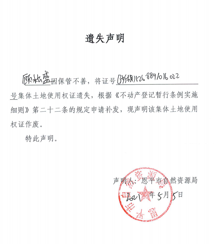 遺失聲明-吳錫宙、吳貴行、吳寶林、吳國強、吳權(quán)亮、謝鳳連、顧錫會、顧林盛、顧錫寧、吳福波
