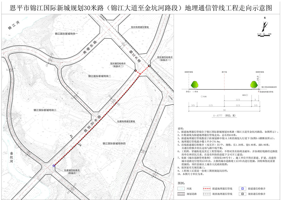為了進(jìn)一步推進(jìn)規(guī)劃公示制度,充分聽取社會(huì)各界對(duì)恩平市錦江國(guó)際新城規(guī)劃30米路(錦江大道至金坑河路段)地埋通信管線工程走向的意見和建議,依照《中華人民共和國(guó)城鄉(xiāng)規(guī)劃法》規(guī)定,現(xiàn)對(duì)相關(guān)事項(xiàng)公示如下: