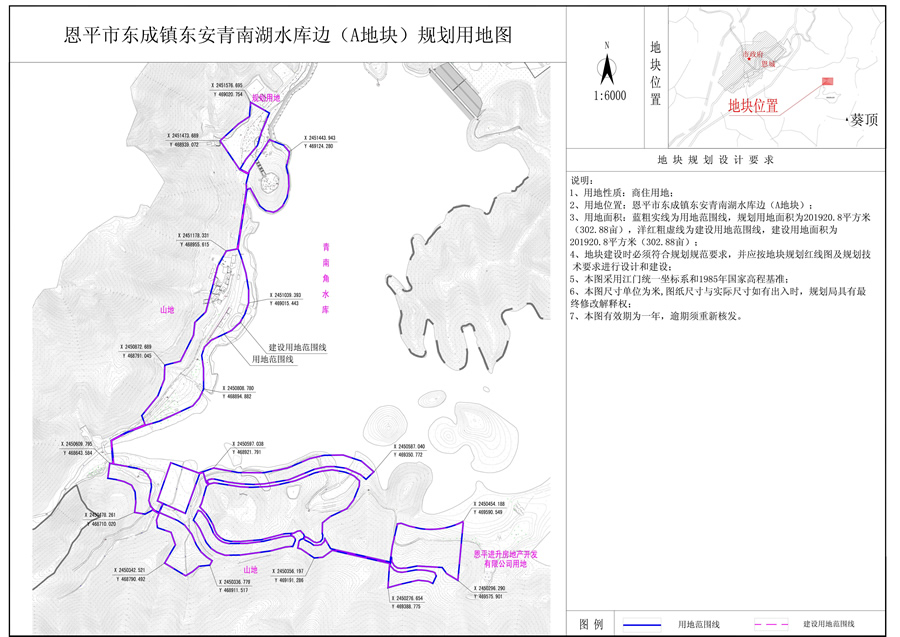 1、項目區(qū)位:恩平市東成鎮(zhèn)東安青南湖水庫邊(A地塊)。