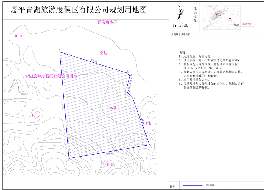 擬調(diào)整用地原位于恩平市東安綜合場擔(dān)水坑,于2006年已辦理國土證[國土證號:恩府國用(2006)第00763號],規(guī)劃用地面積為64666.70平方米(97.0畝),用地性質(zhì)為商住用地?,F(xiàn)開發(fā)單位因?qū)嶋H發(fā)展需求和根據(jù)恩府辦函[2016]444號文件要求以及市國土資源局測繪隊提供的新宗地圖,申請調(diào)整用地范圍線,調(diào)整后位于恩平市東安綜合場擔(dān)水坑,用地性質(zhì)及規(guī)劃用地面積不變,用地性質(zhì)仍為商住用地,規(guī)劃用地面積仍為64666.70平方米,建設(shè)用地面積為64666.70平方米(詳見附圖),現(xiàn)給予公示。