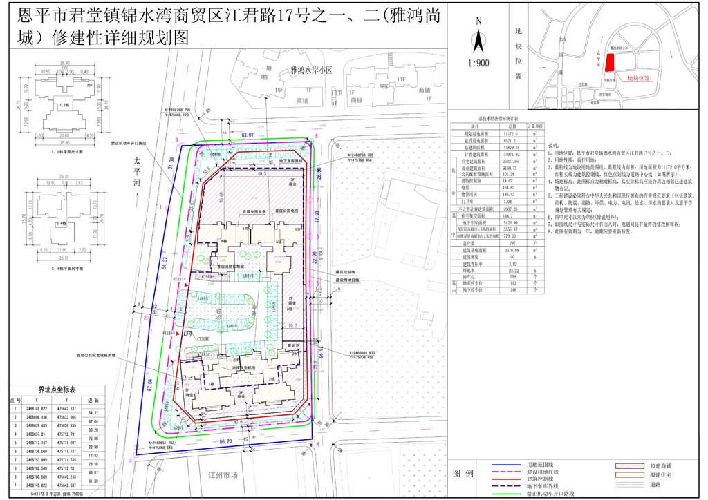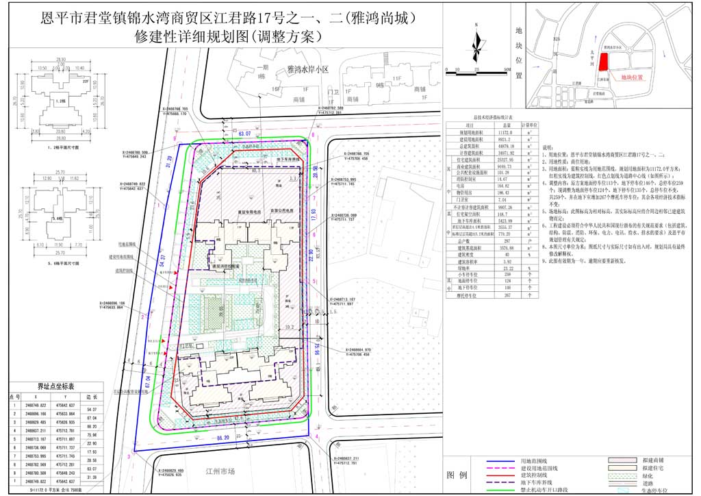 該地塊位于恩平市君堂鎮(zhèn)錦水灣商貿區(qū)江君路17號之一、二,規(guī)劃用地性質為商住用地,規(guī)劃用地面積為11172.0平方米