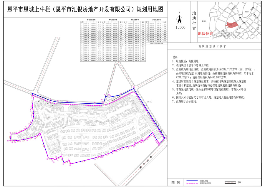2、用地規(guī)模:194208.71平方米(291.3131畝)。其中恩平市恩城上牛欄地塊一用地面積為2828.00平方米;恩平市恩城上牛欄地塊二用地面積為79951.20平方米;恩平市恩城上牛欄地塊三用地面積為60180.00平方米;恩平市恩城上牛欄地塊四用地面積為51249.40平方米。
