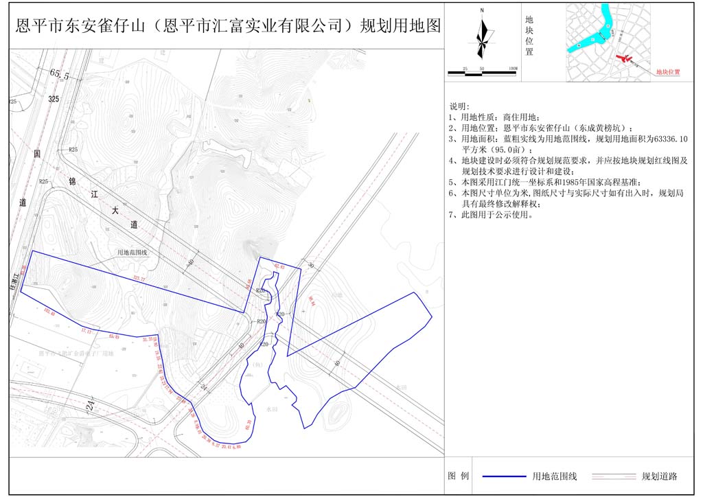為了進(jìn)一步推進(jìn)規(guī)劃公示制度,充分聽取社會(huì)各界對恩平市東安雀仔山(恩平市匯富實(shí)業(yè)有限公司)用地范圍線調(diào)整的意見和建議,依照《中華人民共和國城鄉(xiāng)規(guī)劃法》規(guī)定,現(xiàn)對相關(guān)事項(xiàng)公示如下: