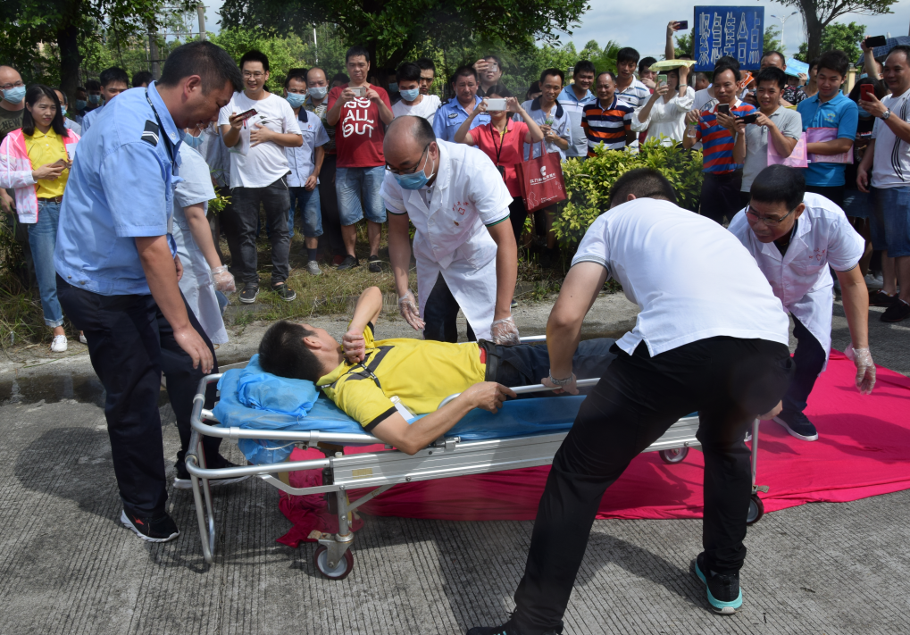 為深入開展2019年恩平園區(qū)、東成鎮(zhèn)“安全生產(chǎn)月”系列活動,進(jìn)一步提升企業(yè)和職工的消防安全意識和應(yīng)急自救能力,6月21日上午,恩平園區(qū)、東成鎮(zhèn)聯(lián)合市應(yīng)急管理局、市消防大隊、東成派出所、河南派出所、東成鎮(zhèn)衛(wèi)生院等在恩平錦興紡織印染企業(yè)有限公司舉辦以“防風(fēng)險、除隱患、遏事故”為主題的安全生產(chǎn)事故應(yīng)急救援演練。市應(yīng)急管理局黨組書記、局長陳育存,恩平園區(qū)、東成鎮(zhèn)領(lǐng)導(dǎo)班子王潤忠、李兵以及相關(guān)部門負(fù)責(zé)人等參加本次活動。東成鎮(zhèn)各村(居)黨支部書記、恩平園區(qū)、東成鎮(zhèn)企業(yè)安全生產(chǎn)負(fù)責(zé)人、企業(yè)員工等約400人現(xiàn)場觀摩了演練。