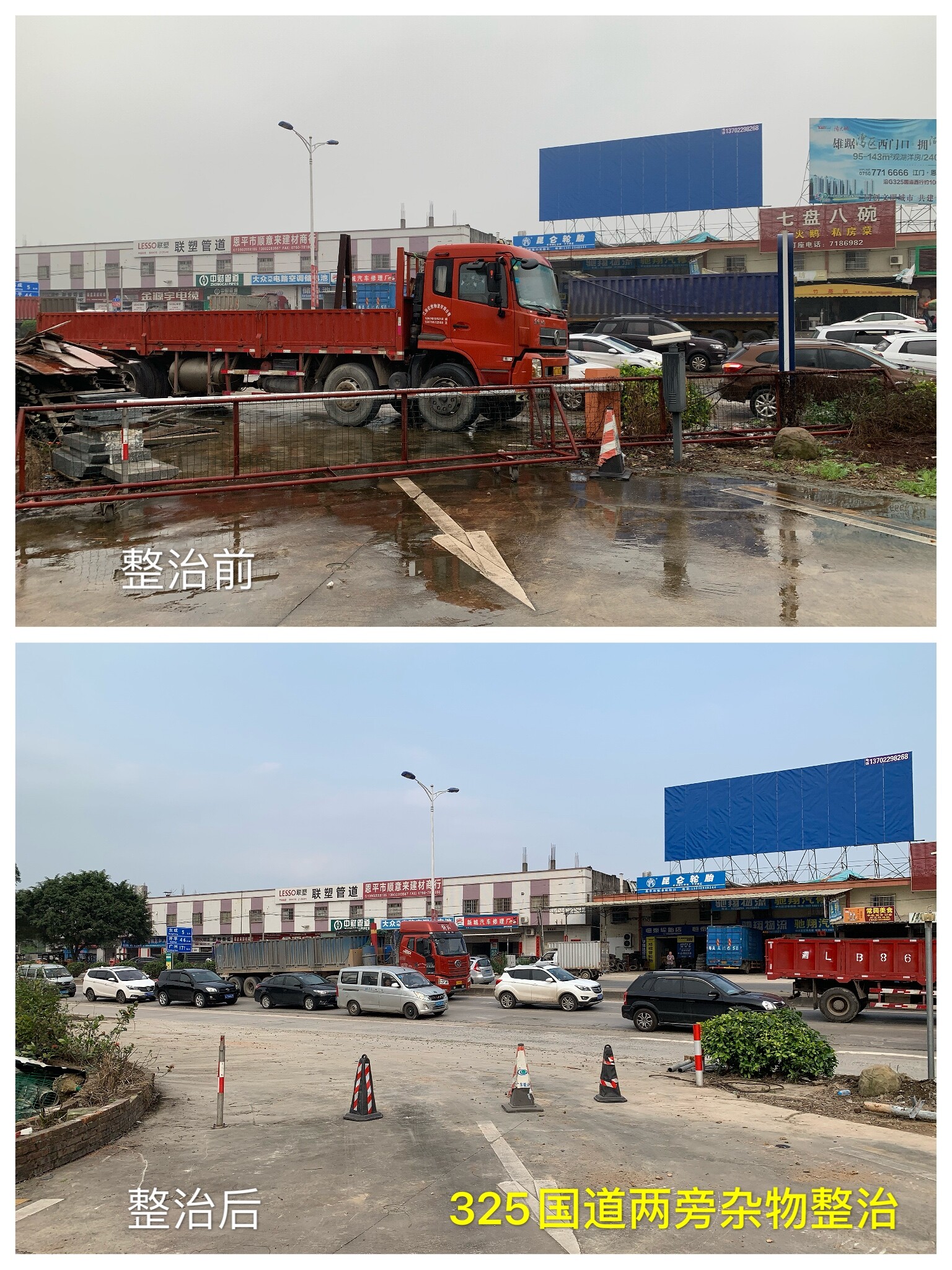 當天,全鎮(zhèn)分成3個整治工作組對省道S367石橋頭村委會同安村花木場“看護房”、縣道X559橫槎村委會橫槎三叉建筑垃圾、豐食農(nóng)家樂與豐茂石業(yè)之間門口亂搭圍欄堆放雜物等開展重點整治。行動中,除組織人力開展集中整治,還動用挖掘機等大型機械對沿線重點整治黑點進行清理清拆,大大提升工作效率。