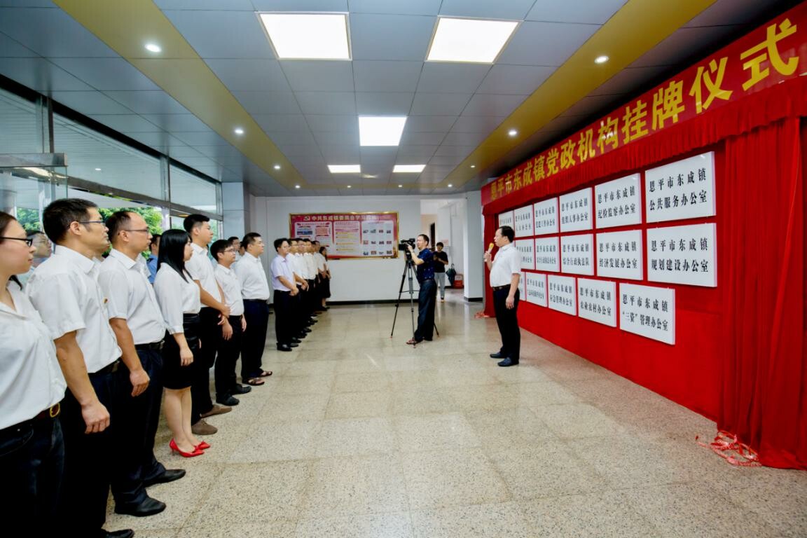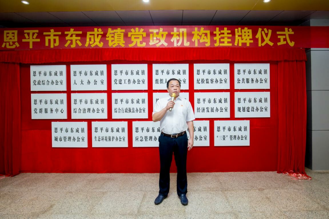 8月13日上午,東成鎮(zhèn)舉行黨政機(jī)構(gòu)掛牌儀式。副市長,工業(yè)園黨工委書記、管委會主任,鎮(zhèn)委書記岑安林出席儀式并作講話。東成鎮(zhèn)、恩平工業(yè)園領(lǐng)導(dǎo)班子成員,東成鎮(zhèn)全體干部,市直派駐機(jī)構(gòu)負(fù)責(zé)人共50多人參加了儀式。