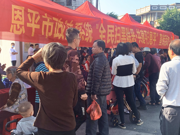 為全面打響掃黑除惡專項斗爭工作收官之戰(zhàn),在群眾中牢固樹立崇尚法治、合力打擊涉黑惡行為的觀念,全方位推進政法知識深入群眾生活,為全市創(chuàng)造安全的政治環(huán)境、穩(wěn)定的社會環(huán)境、公正的法治環(huán)境,11月3日,恩平市政法系統(tǒng)“全民掃黑除惡·共建平安恩平”宣傳活動——東成站再一次在東成鎮(zhèn)僑聯(lián)廣場拉開帷幕。