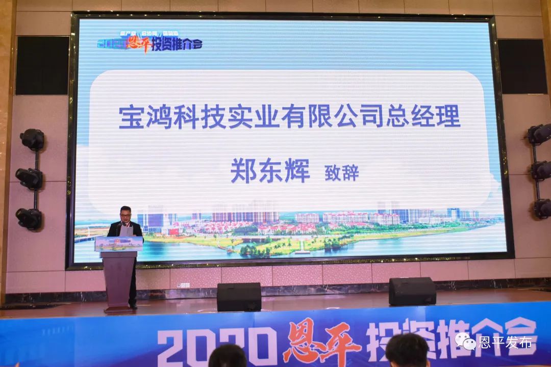 投資商代表寶鴻科技實(shí)業(yè)有限公司總經(jīng)理鄭東輝致辭