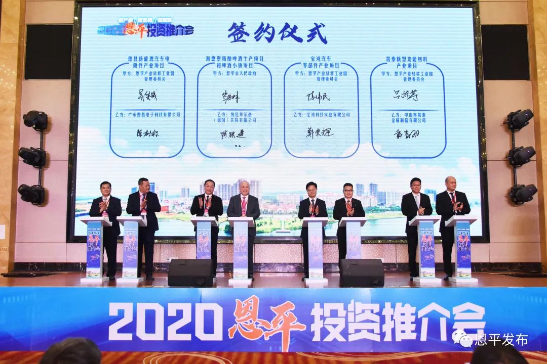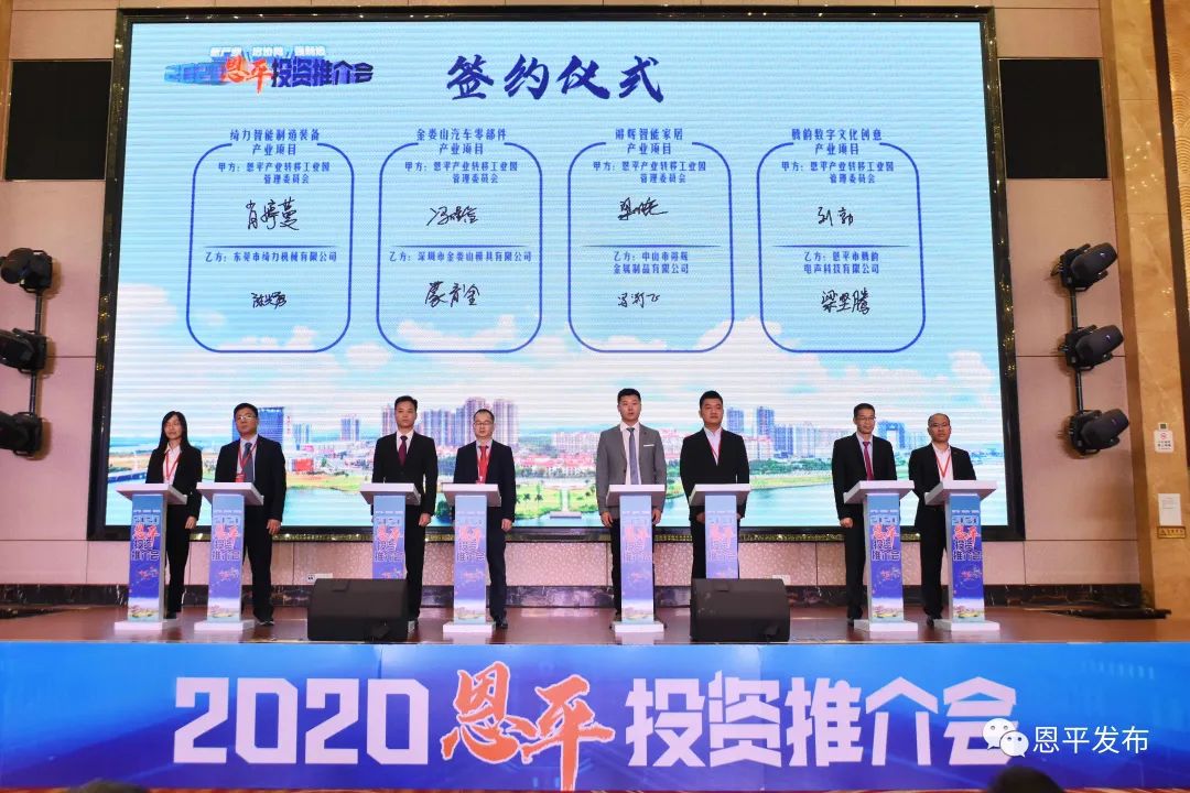 11月23日,由恩平市人民政府主辦,深圳市機(jī)械行業(yè)協(xié)會(huì)、東莞市機(jī)械行業(yè)協(xié)會(huì)、恩平市機(jī)械行業(yè)協(xié)會(huì)協(xié)辦的2020恩平投資推介會(huì)在恩平市逸豪酒店舉行。本次投資推介會(huì)共有18個(gè)項(xiàng)目簽約,總投資額約150億元。其中,現(xiàn)場簽約項(xiàng)目12個(gè),包括一個(gè)超百億元投資額的項(xiàng)目。江門市政府副秘書長麥敏杰,恩平市委副書記、市長劉兵,市人大常委會(huì)主任李健忠,市政協(xié)主席禤纘靈等出席活動(dòng)。