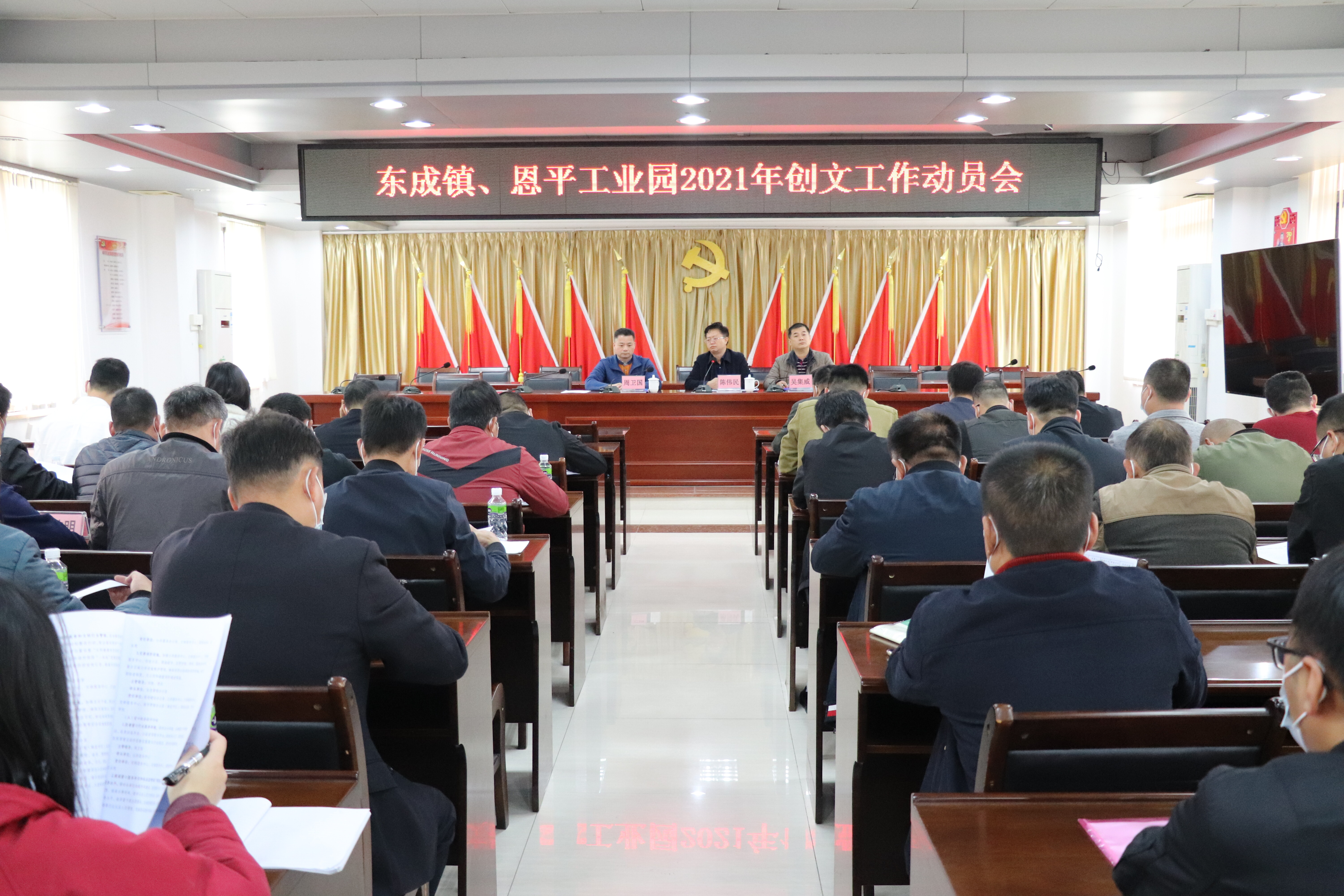 會上,恩平工業(yè)園黨工委委員,東成鎮(zhèn)委委員、人大副主席周衛(wèi)國傳達了市創(chuàng)文動員大會精神,解讀了東成鎮(zhèn)、恩平工業(yè)園2021年創(chuàng)文整治行動方案。