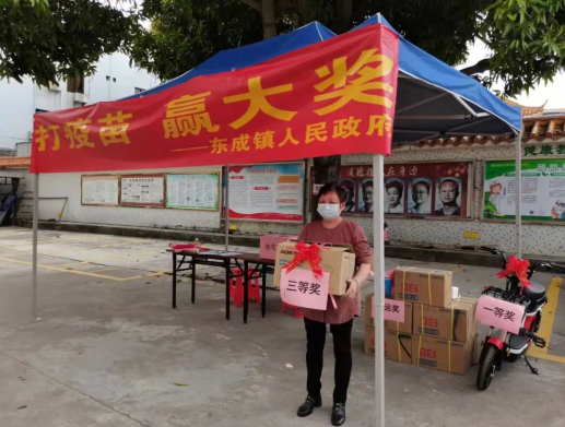為了進一步激發(fā)群眾接種疫苗的積極性,東成鎮(zhèn)推出了“打疫苗 贏大獎”活動。凡到東成鎮(zhèn)衛(wèi)生院接種新冠疫苗都可參與抽獎,設定一、二、三等獎和幸運獎,獎品有電動車、家用電子血壓計、電飯煲、精美禮品等,抽中獎品現(xiàn)場兌現(xiàn)發(fā)放。黨員干部紛紛積極轉(zhuǎn)發(fā)宣傳相關抽獎信息,吸引了不少群眾前往接種,有效加快推進新冠疫苗接種工作。
