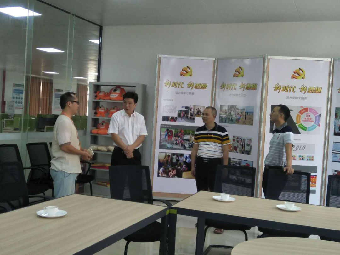 陳偉文一行首先來到恩平市淘金信息科技有限公司,參觀該企業(yè)產(chǎn)品展示區(qū)、黨員活動室,了解公司的運營管理模式和黨建工作開展情況,并就如何做好企業(yè)黨建工作進(jìn)行座談交流。期間,陳偉文聽取了恩平市淘金信息科技有限公司黨支部書記關(guān)于開展活力黨建、打造非公黨組織黨建平臺有關(guān)工作計劃,對該支部的創(chuàng)新理念與做法表示贊賞,充分肯定了這種適合年輕人的充滿活力與朝氣的黨建工作方式。陳偉文指出,非公黨組織要加強溝通聯(lián)動,交流分享經(jīng)驗,充分利用好現(xiàn)有資源平臺,結(jié)合企業(yè)實際開展形式多樣、豐富多彩的黨建活動,充分調(diào)動黨員的積極性,凝心聚力共同打造更有活力更有企業(yè)先鋒作用的非公黨組織。