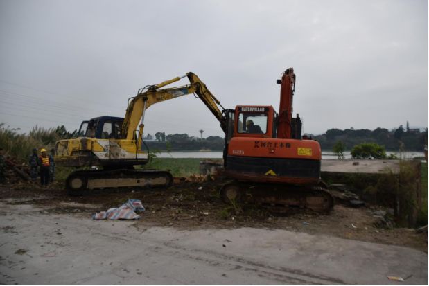 行動(dòng)前,陳偉民對(duì)東成鎮(zhèn)應(yīng)急隊(duì)伍進(jìn)行動(dòng)員部署,明確工作人員具體工作職責(zé)和注意事項(xiàng)。在確保違法建筑內(nèi)無(wú)人停留,核查斷水?dāng)嚯娗闆r后,聯(lián)合執(zhí)法隊(duì)伍當(dāng)即開(kāi)展清拆行動(dòng)。本次行動(dòng)共出動(dòng)挖機(jī)三臺(tái),運(yùn)輸車輛四臺(tái),歷時(shí)三個(gè)半小時(shí),徹底拆除了位于錦江河?xùn)|成鎮(zhèn)綿湖橋上下游的兩宗建筑面積合約1000多平方米的違章建筑,嚴(yán)厲打擊了轄區(qū)內(nèi)的河湖“四亂”現(xiàn)象,確保實(shí)現(xiàn)“河暢、水清、岸綠、景美”的總目標(biāo)。
