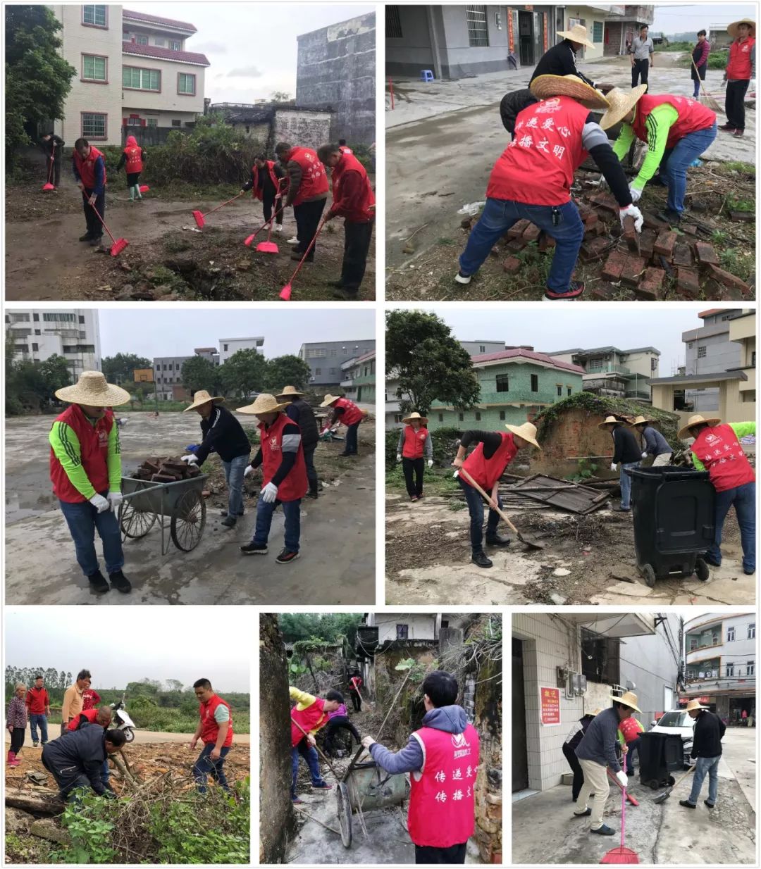 行動中,黨員義工爭當(dāng)環(huán)境整治先鋒,處處可見一群群“紅馬甲”忙碌的身影。黨員義工們凝心聚力,不怕臟、不怕累,手持掃帚、鏟子,到各村的交通要道、村場,清掃垃圾、雜草雜物,整理村場、巷道堆放的生產(chǎn)工具、建筑材料等,清理溝渠淤泥、池塘漂浮物等。