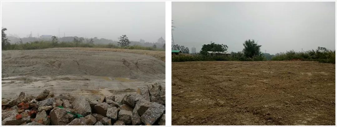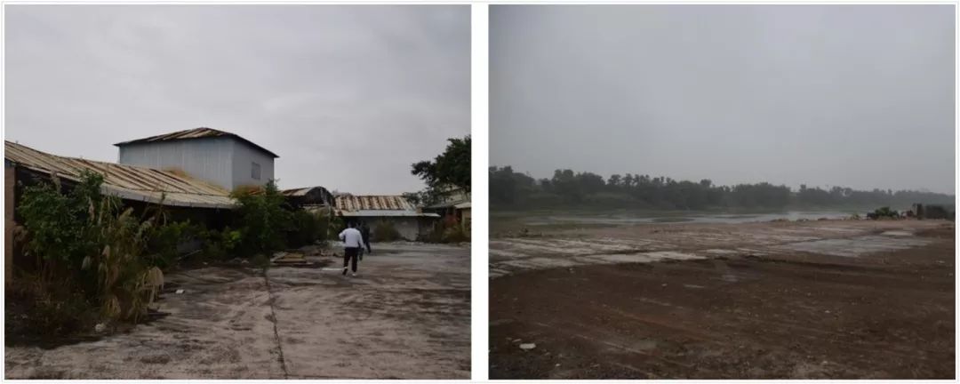 錦江河錦興紡織廠河段違規(guī)占用河道行洪區(qū)堆放砂石粉整治前后